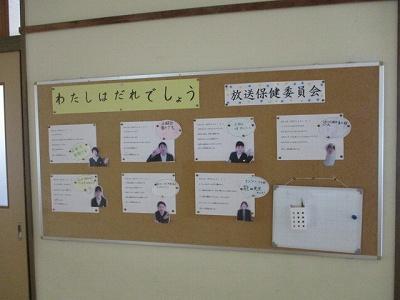 保健室前、委員会の「わたしだれでしょう」クイズの掲示から 卒業式モードへ。