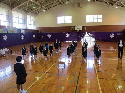 会場で、よい式にしようと、心をひとつにして待つ 1~5年生。