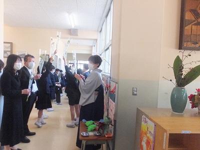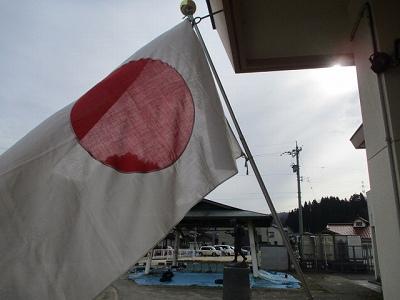 卒業式当日。少し春風が吹いて、日の丸が ひらりと はためきました。