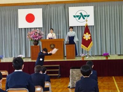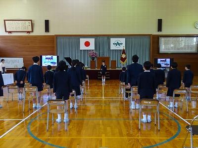国歌斉唱、校歌斉唱も 本番どおり。
