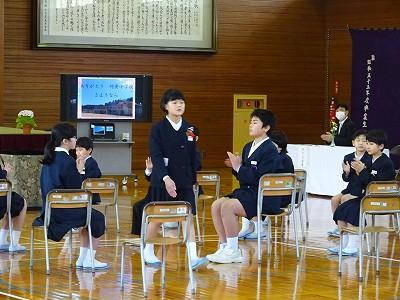 給食後、特設のロングパワーアップタイムにて 卒業式の心構えを確認。