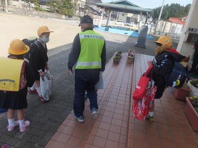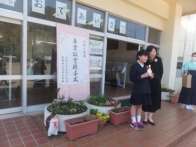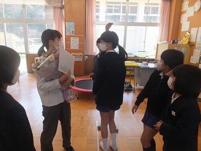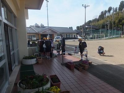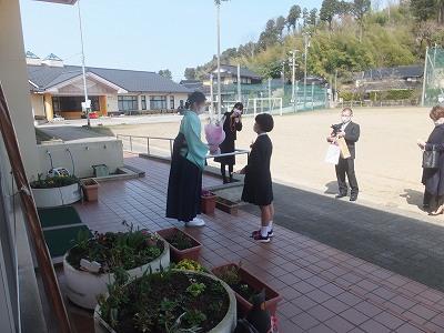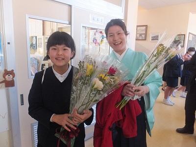 放課後、民生・児童委員の皆様が卒業生にお花を贈ってくださいました。
