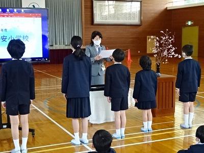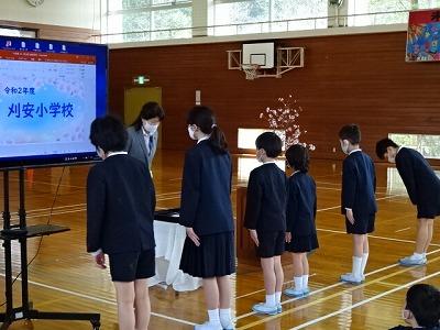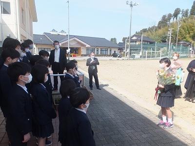 刈安小学校でも4名の先生とのお別れの式がありました。