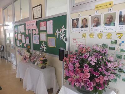 5,6年生の教室や学校のあちらこちらに 卒業式の余韻。 花が美しく飾られています。