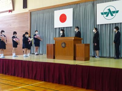 学校長式辞。これまで令和二年度 ただ一人の最高学年としていかに活躍が素晴らしかったことか・・・・オンライン授業や様々な会での代表挨拶 思い出がいっぱい!!