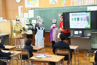 昼休み、「スイミー」の劇発表。2人で何役もがんばりました。