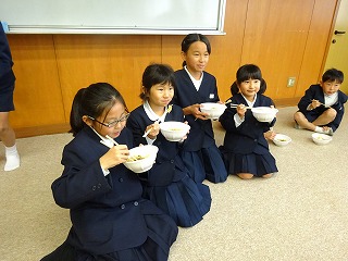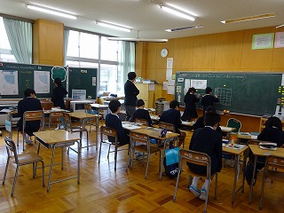 卒業式の前日、6年生といっしょの最後の給食でした。