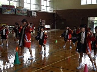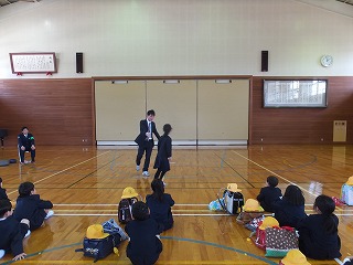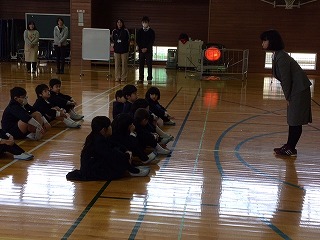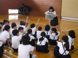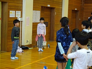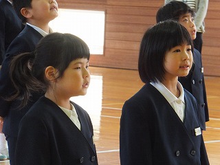 引き続き行われた児童集会では、卒業式で在校生が歌う曲「ありがとうありがとう」を練習しました。