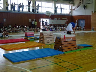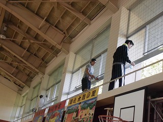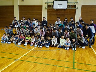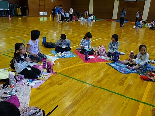 あいにくの雨で、会場を森林公園緑化の広場から、笠野小学校の体育館に変更して行いました。