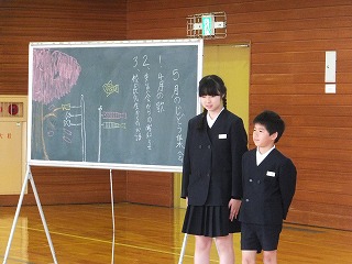 続いての児童集会では各委員会の活動計画を6年生が発表しました。