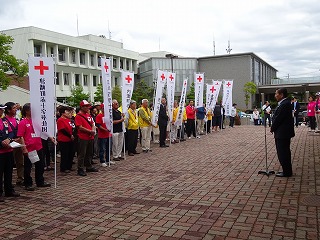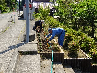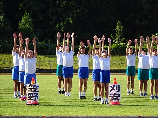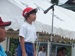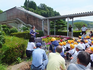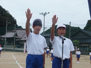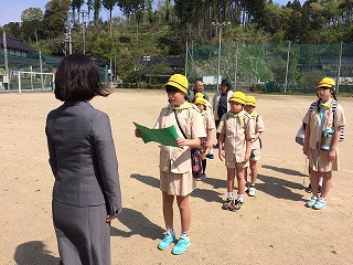 緑の少年団の団結式には4年生以上の児童が参加し、これからの花壇の世話や緑の募金などの活動に向けた決意を述べました。