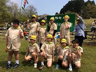 4月29日昭和の日に、緑の少年団団結式を行い、県民緑の祭典に参加しました。