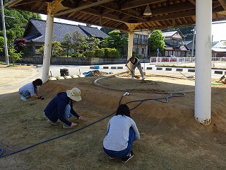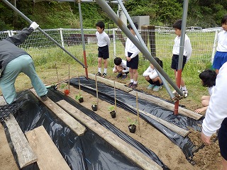 小谷さんには事前にひょうたん棚の補修や耕運機をかけていただきました。
