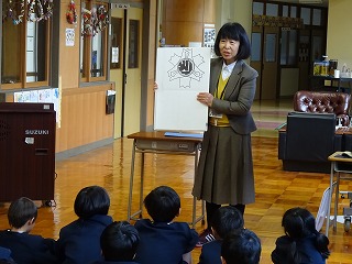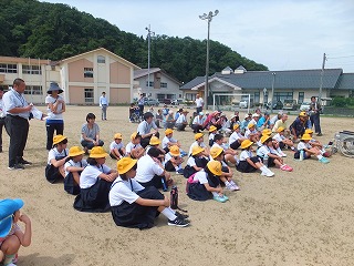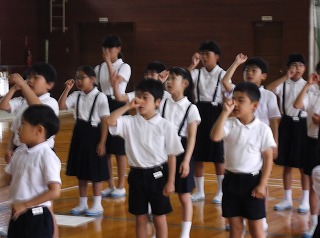 集会が初めての1年生も背筋をピンと伸ばして話を聴いていました。