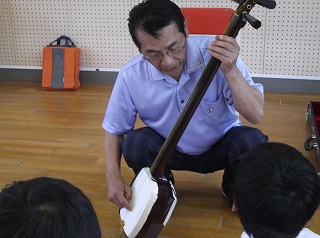 二胡や馬頭琴をさわらせていただき、仕組みや音の出し方を教えていただきました。