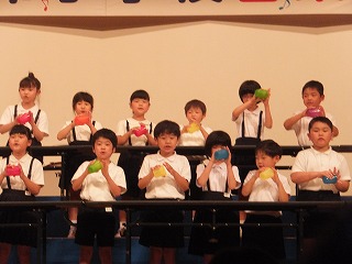 さらに、4年生と6年生が、音楽の時間に練習した曲の合奏を発表しました。