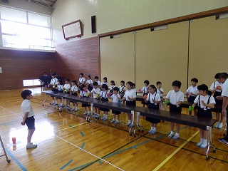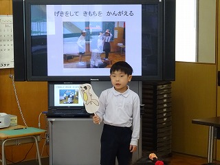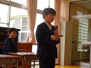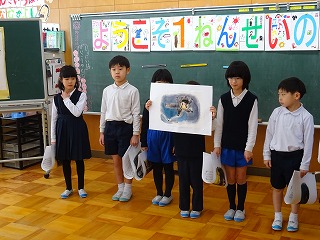 校長先生は、「〇年生の勉強を頑張りました。修了おめでとう。この一年間でいろいろなことができるようになったと思います。思い出してみましょう。」とおっしゃい、一人一人ができるようになったことを発表しました。