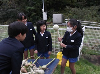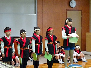 「百彩会倶利伽羅チーム」は、収穫感謝祭や通学合宿でもお世話になっており、1年生の子どもたちは、毎年、昔遊びの会に招待されています。