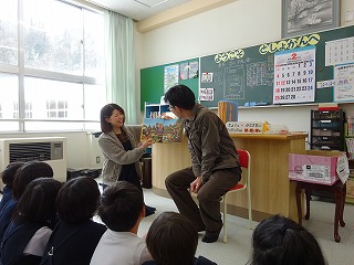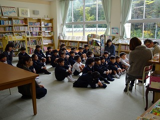 早速、朝読書の時間に1年生から3年生は読み聞かせをしていただきました。