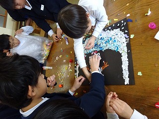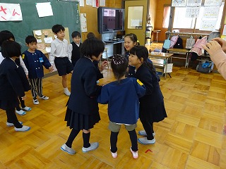 今回は、残念なことにインフルエンザなどで欠席者が何人もいたのですが、欠席した6年生の役割を4年生が補い、下級生も協力し、成長につながる交流活動になりました。
