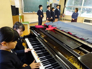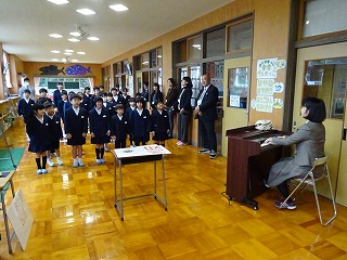 校歌の伴奏を2年間続けた6年の石山さんは、今日が最後です。