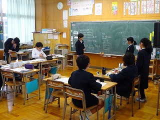 4・6年 算数 4年生と6年生が、それぞれ自分たちで学習を進めています。