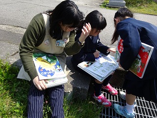 3年生は理科の時間に、名前の分からない草花を一緒に調べていただきました。