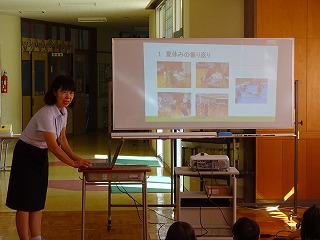 夏休みの振り返りでは、サマースクールや登校日、2校交流や水泳記録会などを振り返り、夏休み前に立てた目標が達成できたか確かめました。