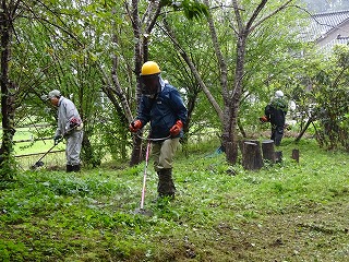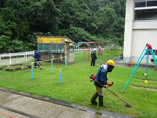 今年は9月10日、強い雨の日でしたが、夏の間に大きく伸びた花壇やその周り、体育館の裏などの雑草を取ったり刈ったりしてくださいました。また、運動会に向けてグラウンドの草も取ってくださいました。