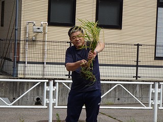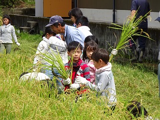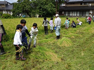 5月9日に田植えをした苗が大きく育ち、9月11日、学校田の稲刈りを行いました。