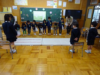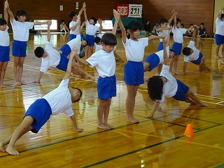 競技によってはルールを変えて行いましたが、室内のやり方にもうまく対応し、全ての演技・競技をやり遂げることができました。とりわけ6年生がいない今年度、5年生が最高学年として自覚をもって行動してくれました。