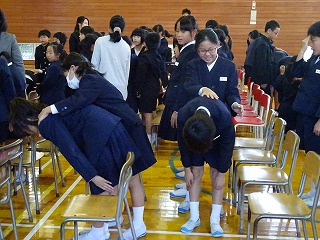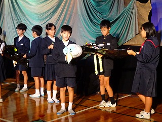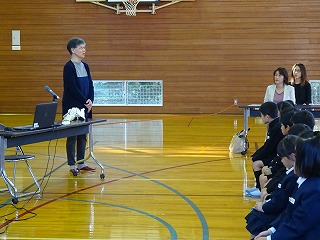 その後、校長先生は、マリナーズのイチロー選手の引退会見から、「熱中できるものを見つけられれば、それに向かってエネルギーを注げる。それを早く見つけてほしい。見つかれば、立ちはだかる壁に向かっていける。いろんなことにトライして、好きなものを見つけてほしい。」という言葉を紹介し、やりたいことを見つけ、努力を積み重ね、やりとげてほしいと述べました。