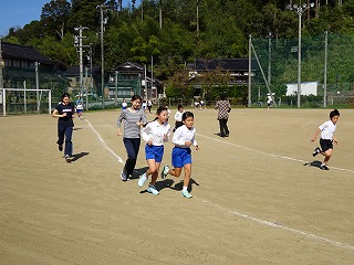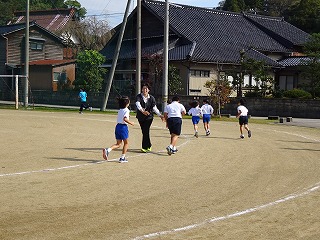 現在、最高タイムの児童の挨拶で、練習開始です。