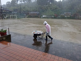 10日は豪雨のため子どもたちは参加しませんでしたが、12日、子どもたちもグラウンドの小石拾い、草取りをしました。