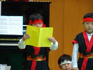 子供たちは、この一年間の学習でできるようになったことを劇の中に入れ込み、楽しい発表を披露しました。