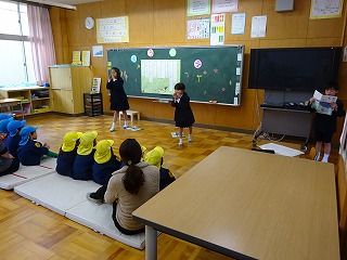 10月の児童集会は、寺尾保育園の年長さんを招待しました。