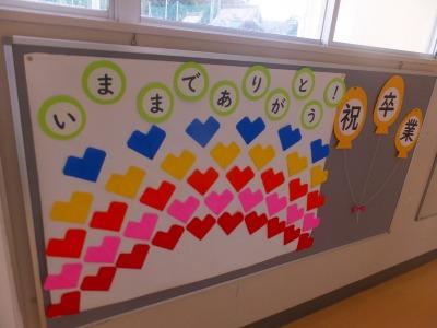 廊下は、少しずつ 卒業式にむけての飾りに 変わってきています。