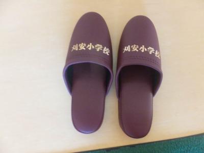 卒業式にむけて購入していた新しいスリッパが届きましたので、さっそく役員さんに使用していただきました。