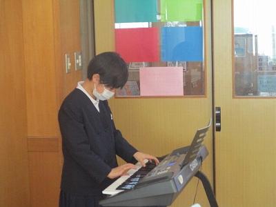 休み時間、体育館のピアノでは、卒業式にむけて5年生は「校歌」
