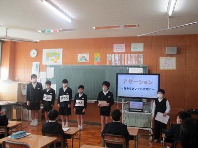 次に、生徒指導。3月は、1年を振り返り、自分で決めためあてにむかっていきます。