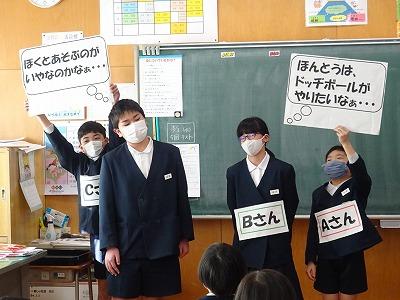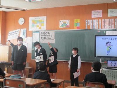 昼休み、3年生が 「学校じまん」の発表 第2回。