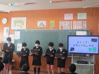 次に、5,6年生による発表 「ストップ、メディアのしすぎ」