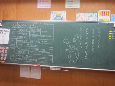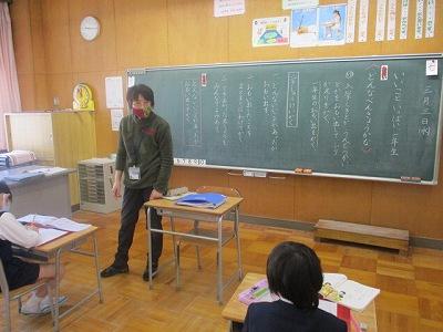 今日は、先生がお出かけで、一日色々な先生と学習する1,2年生です。