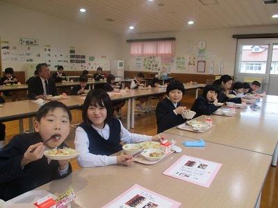 明日は ひな祭り。給食は、一日早く ひな祭りメニュー。おいしー。