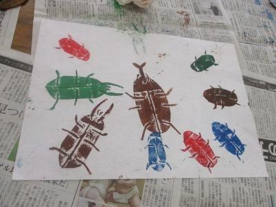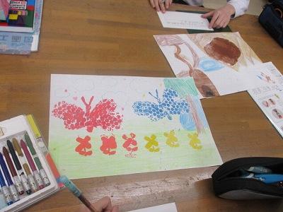 版画作成中。これは、「6年生を送る会で活躍する自分の姿」とのこと、いいね!