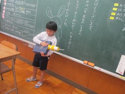 1,2年生は、作ったおもちゃや楽器の紹介。