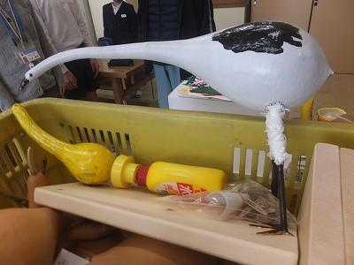 1/19 瓢箪で鶴の親子作り