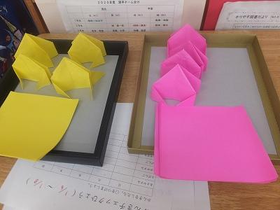 高学年が低学年に教えつつ、また折っていきます。