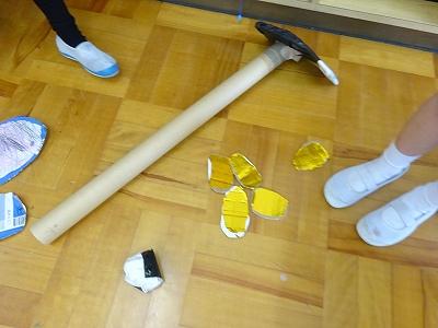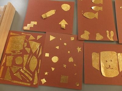 1~3年生が下校した後は、4~6年生がクラブで、金箔工作。