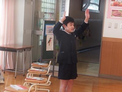 ジェスチャーをつけて、堂々と大きな声で表現できました。キックのポーズもかっこよかったです。